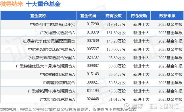 重仓微导纳米的前十大公募基金请见下表: