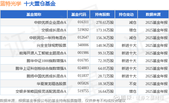 根据2025基金年报公募基金重仓股数据,重仓该股的公募基金共28家,其中持有数量最多的公募基金为中欧基金的中欧优质企业混合A。中欧优质企业混合A目前规模为17.21亿元,最新净值1.3445(2月2日),较上一交易日下跌3.96%,近一年上涨49.46%。该公募基金现任基金经理为代云锋。代云锋在任的基金产品包括:中欧洞见一年持有混合,管理时间为2022年7月7日至今,期间收益率为27.17%;中欧科技成长混合A,管理时间为2024年2月2日至今,期间收益率为102.91%。