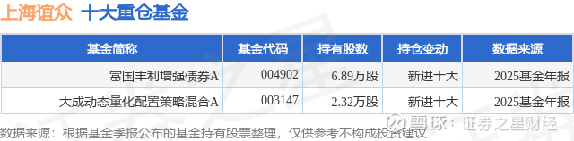 根据2025基金年报公募基金重仓股数据,重仓该股的公募基金共2家,其中持有数量最多的公募基金为富国基金的富国丰利增强债券A。富国丰利增强债券A目前规模为11.62亿元,最新净值1.4111(2月2日),较上一交易日下跌0.7%,近一年上涨11.44%。该公募基金现任基金经理为陈斯扬。陈斯扬在任的基金产品包括:富国宝利增强债券A,管理时间为2018年3月19日至今,期间收益率为46.99%;富国兴利增强债券A,管理时间为2018年4月2日至今,期间收益率为77.46%;富国盛利增强债券发起式A,管理时间为2024年3月18日至今,期间收益率为10.88%。