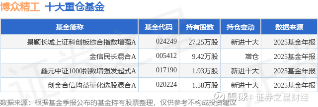 重仓博众精工的公募基金请见下表: