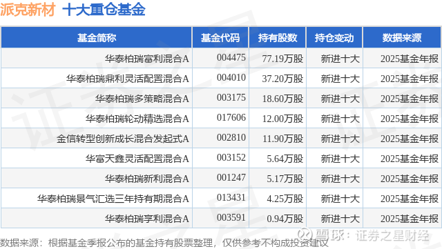 重仓派克新材的公募基金请见下表: