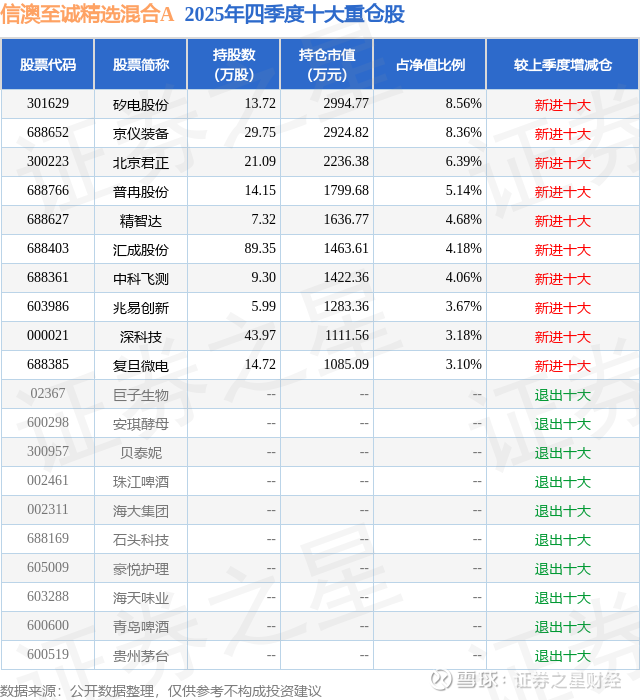 重仓矽电股份的公募基金请见下表: