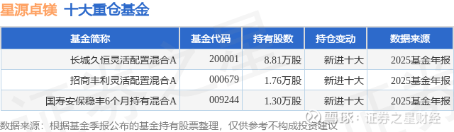 根据2025基金年报公募基金重仓股数据,重仓该股的公募基金共3家,其中持有数量最多的公募基金为长城基金的长城久恒灵活配置混合A。长城久恒灵活配置混合A目前规模为1.01亿元,最新净值2.3994(2月2日),较上一交易日下跌3.39%,近一年上涨50.31%。该公募基金现任基金经理为储雯玉。储雯玉在任的基金产品包括:长城国企优选混合发起式A,管理时间为2023年10月24日至今,期间收益率为22.23%。