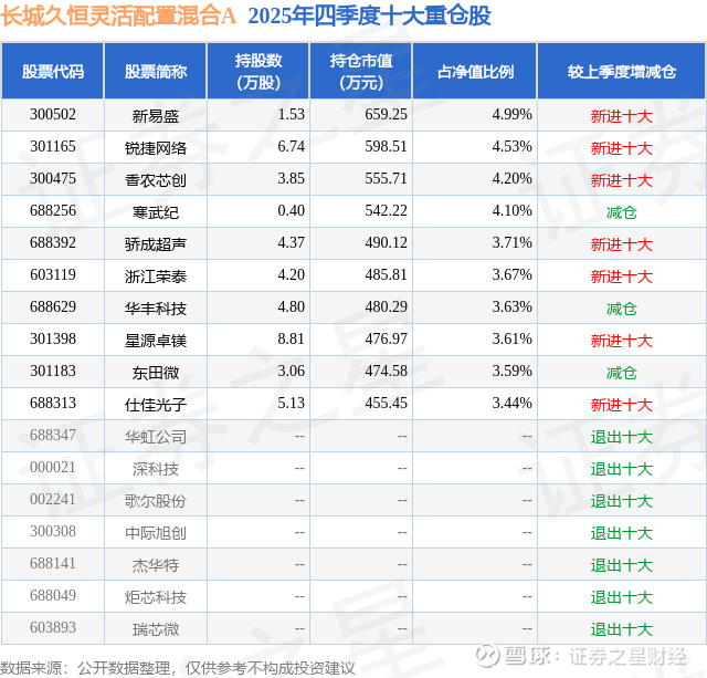 长城久恒灵活配置混合A的前十大重仓股如下: