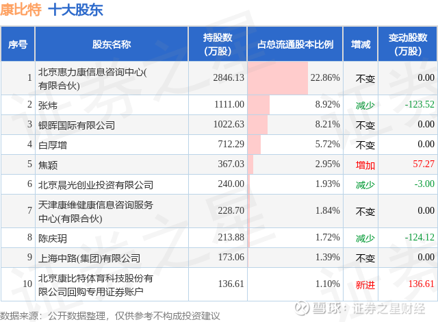 根据康比特2025年三季报公布的十大股东详情如下: