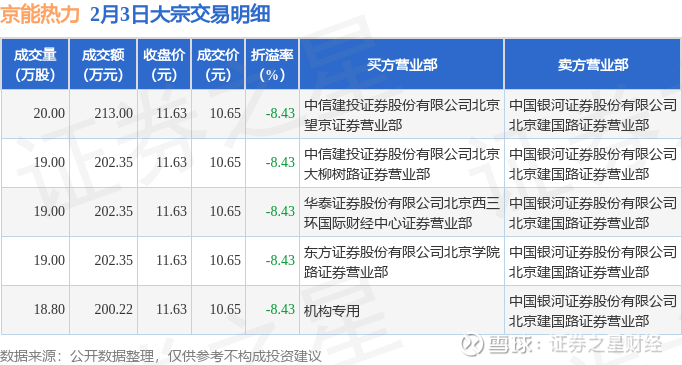 证券之星消息,2月3日京能热力发生大宗交易,交易数据如下: