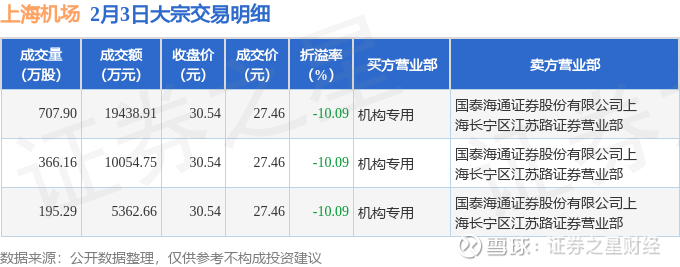 证券之星消息,2月3日上海机场发生大宗交易,交易数据如下: