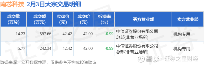 证券之星消息,2月3日南芯科技发生大宗交易,交易数据如下: