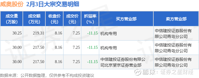 证券之星消息,2月3日威奥股份发生大宗交易,交易数据如下: