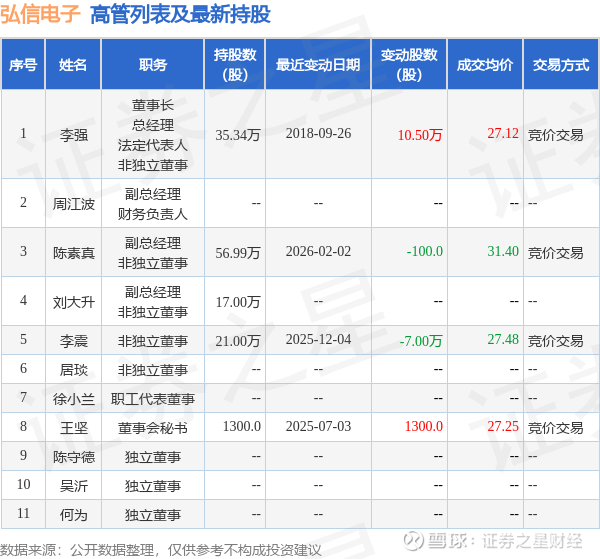 弘信电子的高管列表及最新持股情况如下: