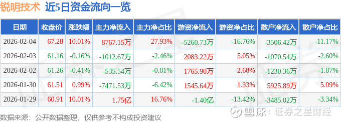 2月4日的资金流向数据方面,主力资金净流入8767.15万元,占总成交额27.93%,游资资金净流出5260.73万元,占总成交额16.76%,散户资金净流出3506.42万元,占总成交额11.17%。