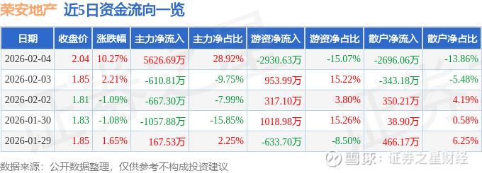 2月4日的资金流向数据方面,主力资金净流入5626.69万元,占总成交额28.92%,游资资金净流出2930.63万元,占总成交额15.07%,散户资金净流出2696.06万元,占总成交额13.86%。