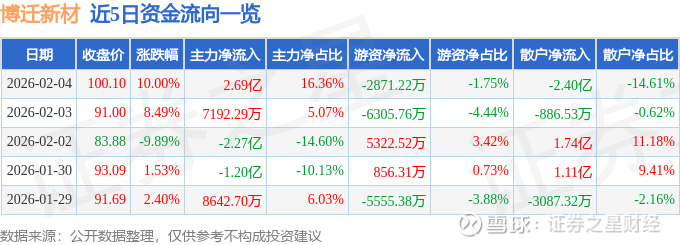 2月4日的资金流向数据方面,主力资金净流入2.69亿元,占总成交额16.36%,游资资金净流出2871.22万元,占总成交额1.75%,散户资金净流出2.4亿元,占总成交额14.61%。