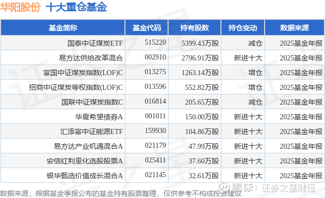 重仓华阳股份的前十大公募基金请见下表: