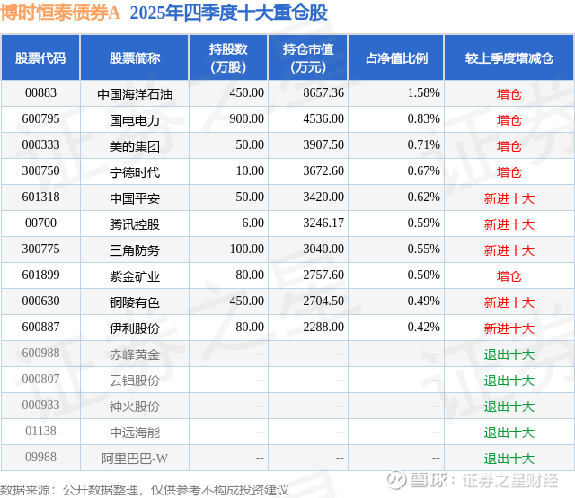 博时恒泰债券A的前十大重仓股如下: