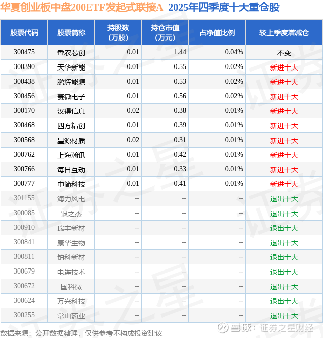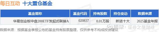 根据2025基金年报公募基金重仓股数据,重仓该股的公募基金共1家,其中持有数量最多的公募基金为华夏基金的华夏创业板中盘200ETF发起式联接A。华夏创业板中盘200ETF发起式联接A目前规模为0.24亿元,最新净值1.6298(2月3日),较上一交易日上涨3.29%,近一年上涨45.71%。该公募基金现任基金经理为刘蔚。刘蔚在任的基金产品包括:华夏创业板中盘200ETF,管理时间为2026年1月16日至今,期间收益率为-7.36%。