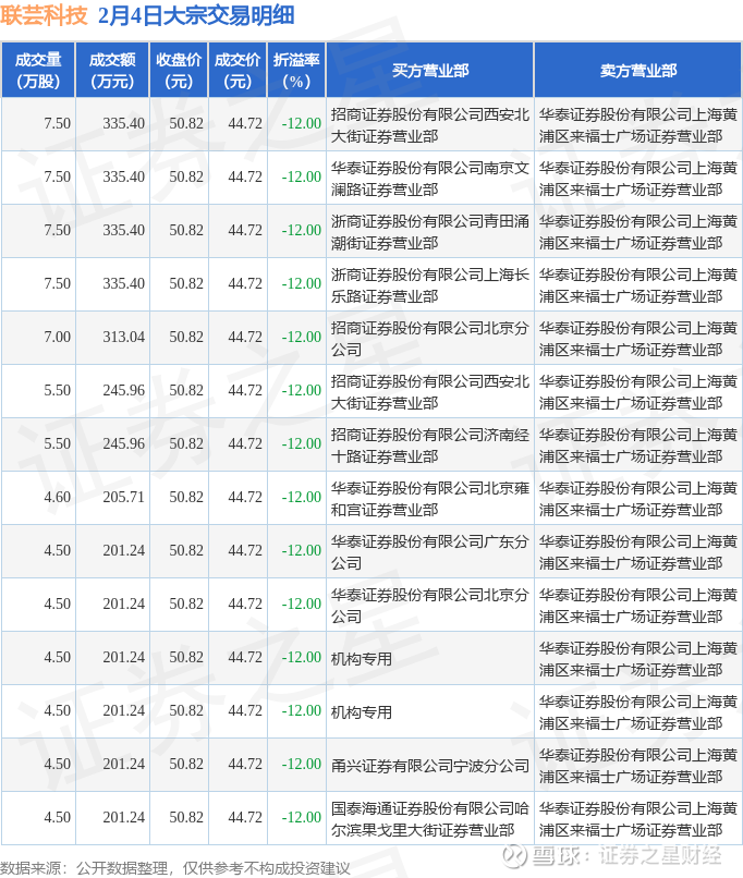 证券之星消息,2月4日联芸科技发生大宗交易,交易数据如下: