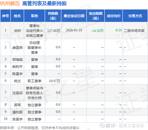杭州解百的高管列表及最新持股情况如下: