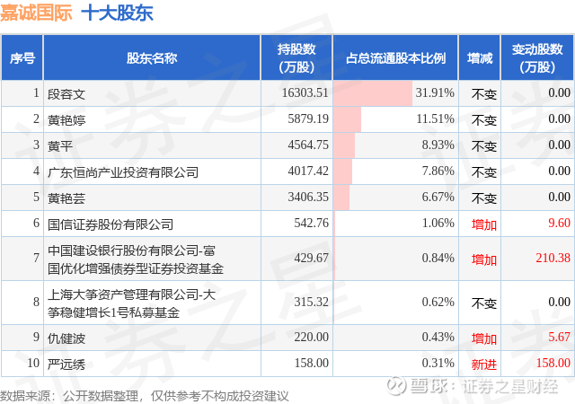 根据嘉诚国际2025年三季报公布的十大股东详情如下: