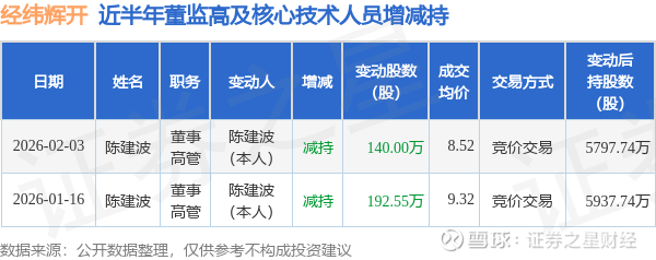 经纬辉开近半年内的董监高及核心技术人员增减持详情如下:
