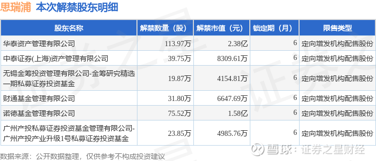 本次解禁涉及股东明细见下表: