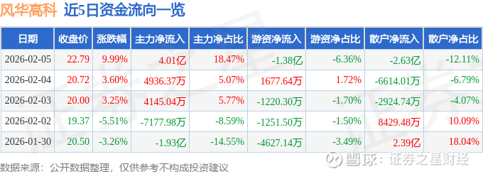 2月5日的资金流向数据方面,主力资金净流入4.01亿元,占总成交额18.47%,游资资金净流出1.38亿元,占总成交额6.36%,散户资金净流出2.63亿元,占总成交额12.11%。