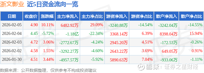 证券之星消息,浙文影业2月5日涨停收盘,收盘价4.9元。该股于9点32分涨停,未打开涨停,截止收盘封单资金为1.89亿元,占其流通市值3.32%。
