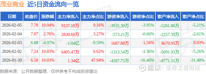 2月5日的资金流向数据方面,主力资金净流入9137.1万元,占总成交额9.16%,游资资金净流出3935.3万元,占总成交额3.95%,散户资金净流出5201.8万元,占总成交额5.21%。