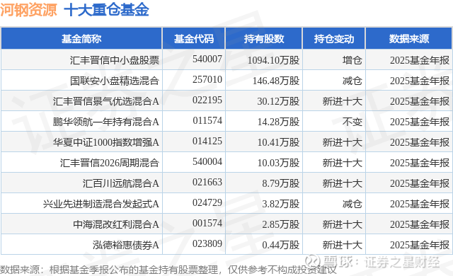 重仓河钢资源的前十大公募基金请见下表: