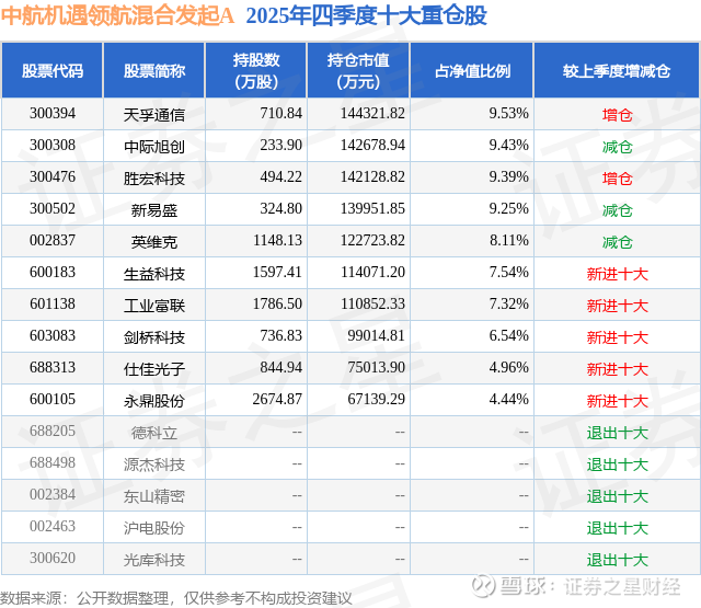 根据2025基金年报公募基金重仓股数据,重仓该股的公募基金共81家,其中持有数量最多的公募基金为中航基金的中航机遇领航混合发起A。中航机遇领航混合发起A目前规模为24.75亿元,最新净值3.6612(2月4日),较上一交易日下跌2.89%,近一年上涨163.7%。该公募基金现任基金经理为韩浩。韩浩在任的基金产品包括:中航军民融合精选A,管理时间为2018年2月9日至今,期间收益率为62.45%;中航新起航灵活配置混合A,管理时间为2018年4月23日至今,期间收益率为-6.33%;中航华证商飞高端制造产业指数发起A,管理时间为2023年3月7日至今,期间收益率为12.48%;