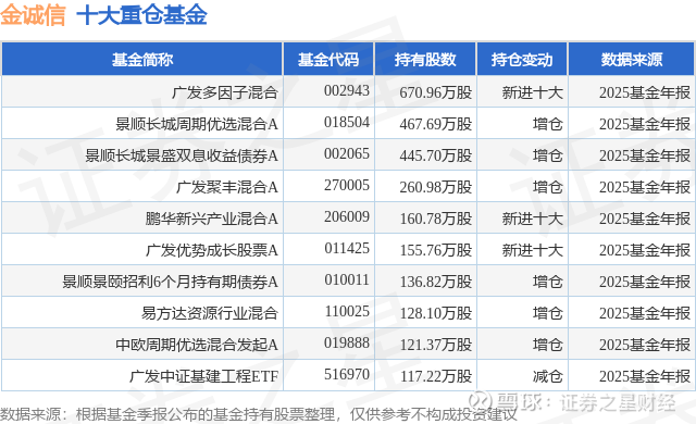 重仓金诚信的前十大公募基金请见下表: