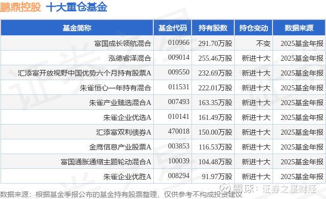 重仓鹏鼎控股的前十大公募基金请见下表: