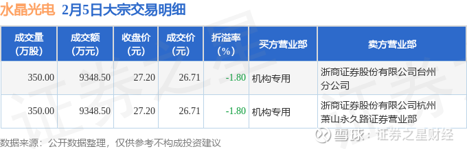 证券之星消息,2月5日水晶光电发生大宗交易,交易数据如下:
