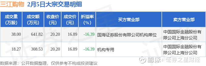 证券之星消息,2月5日三江购物发生大宗交易,交易数据如下: