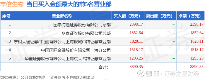 证券小知识:龙虎榜是交易所披露的竞价交易公开信息,现身龙虎榜的个股都是当日最为活跃的个股,是投资者日常重点关注的数据。交易所公布当日买入金额和卖出金额前五名的席位,其中一些席位代表特殊意义,如机构专用席位是指基金专用席位、券商自营专用席位、社保专用席位、券商理财专用席位、保险机构专用席位、保险机构租用席位、QFII专用席位等机构投资者买卖证券的专用通道和席位。深股通专用、沪股通专用为北向资金的交易席位。