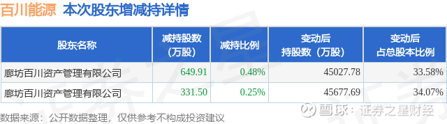 证券之星消息,2月5日百川能源发布公告《百川能源:百川能源关于控股股东及其一致行动人权益变动触及5%刻度的提示性公告》,其股东廊坊百川资产管理有限公司于2026年1月30日至2026年2月4日间合计减持981.41万股,占公司目前总股本的0.7319%,变动期间该股股价下跌1.4%,截止2月4日收盘报4.24元。