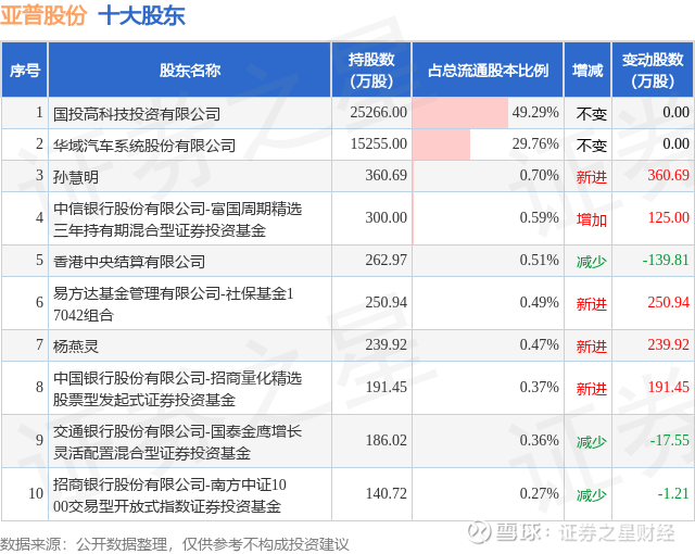 根据亚普股份2025年三季报公布的十大股东详情如下: