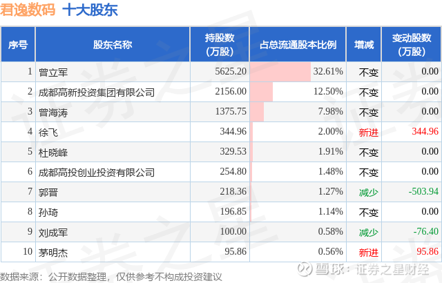 根据君逸数码2025年三季报公布的十大股东详情如下: