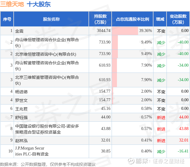 根据三维天地2025年三季报公布的十大股东详情如下: