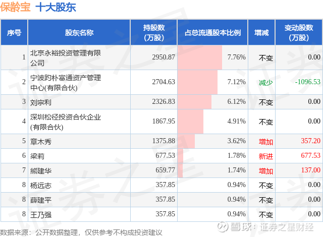 根据保龄宝2025年三季报公布的十大股东详情如下: