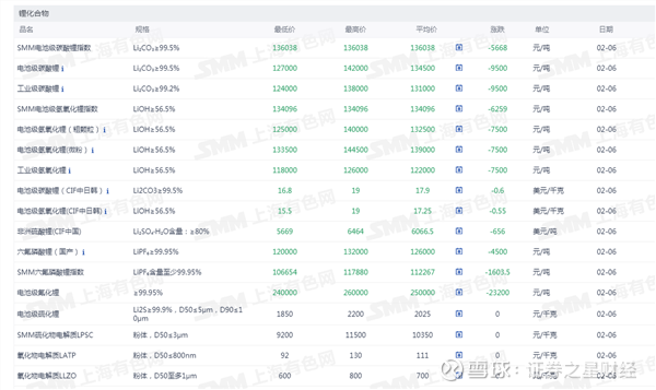 锂化合物现货价格