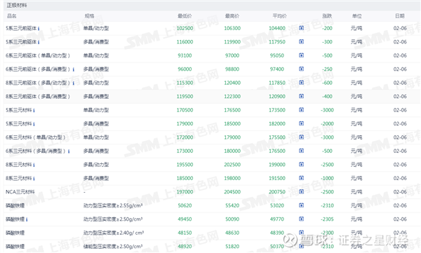 正极材料价格
