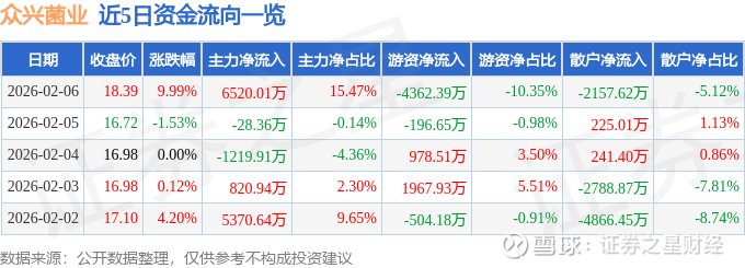 2月6日的资金流向数据方面,主力资金净流入6520.01万元,占总成交额15.47%,游资资金净流出4362.39万元,占总成交额10.35%,散户资金净流出2157.62万元,占总成交额5.12%。