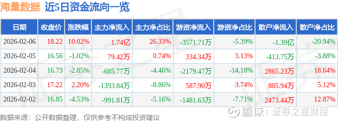 2月6日的资金流向数据方面,主力资金净流入1.74亿元,占总成交额26.33%,游资资金净流出3571.71万元,占总成交额5.39%,散户资金净流出1.39亿元,占总成交额20.94%。