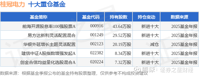 重仓桂冠电力的公募基金请见下表: