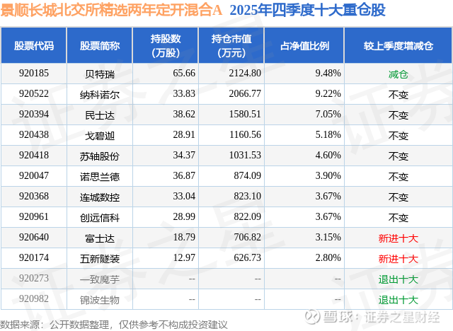 根据2025基金年报公募基金重仓股数据,重仓该股的公募基金共2家,其中持有数量最多的公募基金为景顺长城基金的景顺长城北交所精选两年定开混合A。景顺长城北交所精选两年定开混合A目前规模为1.87亿元,最新净值2.1254(2月5日),较上一交易日下跌2.25%,近一年上涨63.52%。该公募基金现任基金经理为农冰立。农冰立在任的基金产品包括:景顺长城品质长青混合A,管理时间为2023年7月6日至今,期间收益率为119.0%;景顺长城新兴产业混合A,管理时间为2025年4月1日至今,期间收益率为64.54%;景顺长城成长同行混合,管理时间为2025年6月27日至今,期间收益率为25.17%。