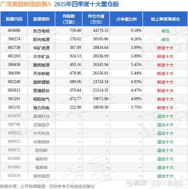 根据2025基金年报公募基金重仓股数据,重仓该股的公募基金共44家,其中持有数量最多的公募基金为广发基金的广发高端制造股票A。广发高端制造股票A目前规模为40.67亿元,最新净值1.4406(2月5日),较上一交易日下跌1.95%,近一年上涨17.7%。该公募基金现任基金经理为郑澄然。郑澄然在任的基金产品包括:广发鑫享灵活配置混合A,管理时间为2020年5月20日至今,期间收益率为57.03%;广发兴诚混合A,管理时间为2021年1月6日至今,期间收益率为-49.28%;广发诚享混合A,管理时间为2021年2月8日至今,期间收益率为-48.44%。