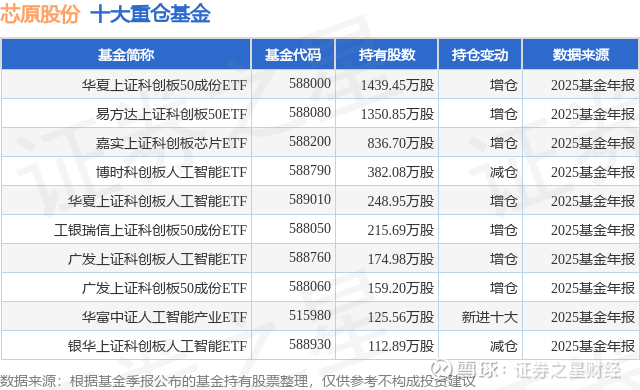 重仓芯原股份的前十大公募基金请见下表: