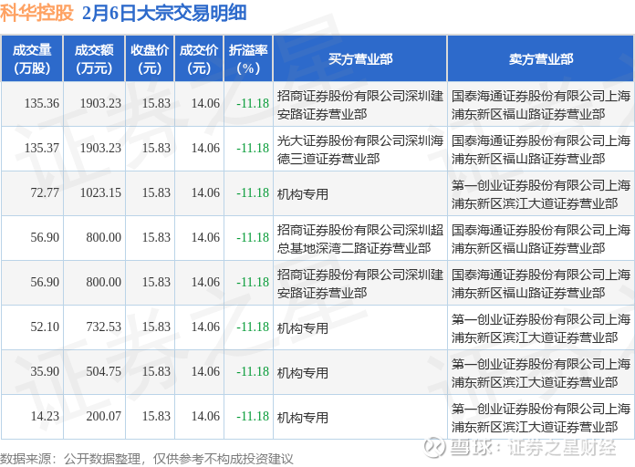证券之星消息,2月6日科华控股发生大宗交易,交易数据如下: