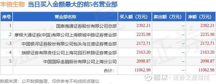 证券之星消息,沪深交易所2026年2月6日公布的交易公开信息显示,丰倍生物(603334)因有价格涨跌幅限制的日换手率达到20%的前五只证券登上龙虎榜。此次是近5个交易日内第2次上榜。